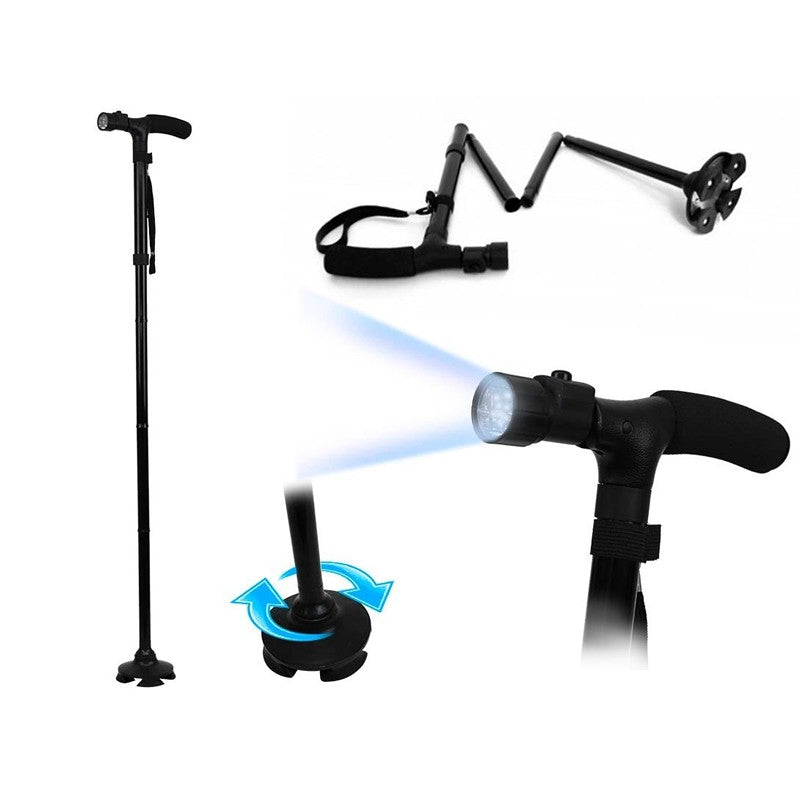 عصا المشي المصنوعة من الألومنيوم خفيفة الوزن والمتينة مع مصباح يدوي LED:
